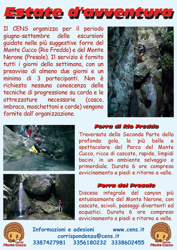 ProgrammaManifesto - CENS - Nel Parco del Monte Cucco, natura, avventura, educazione naturalistica, speleologia, escursionismo, torrentismo, canyoning